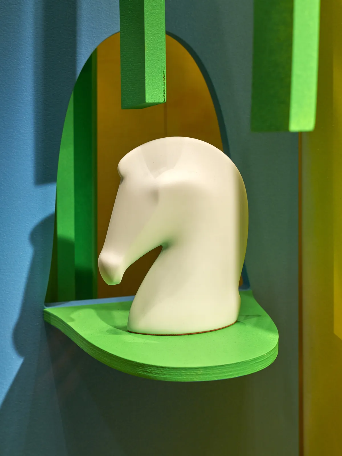 Anna Kyjovská weaves the iconography of Hermes together with the distinctive influences that permeate her work. Her work subtly echoes elements of children’s, folk, and amateur art.